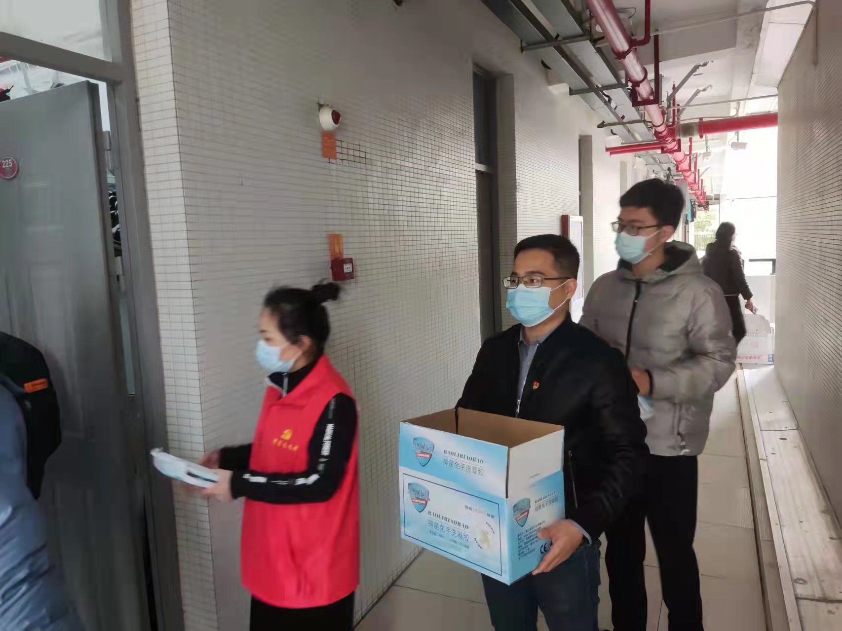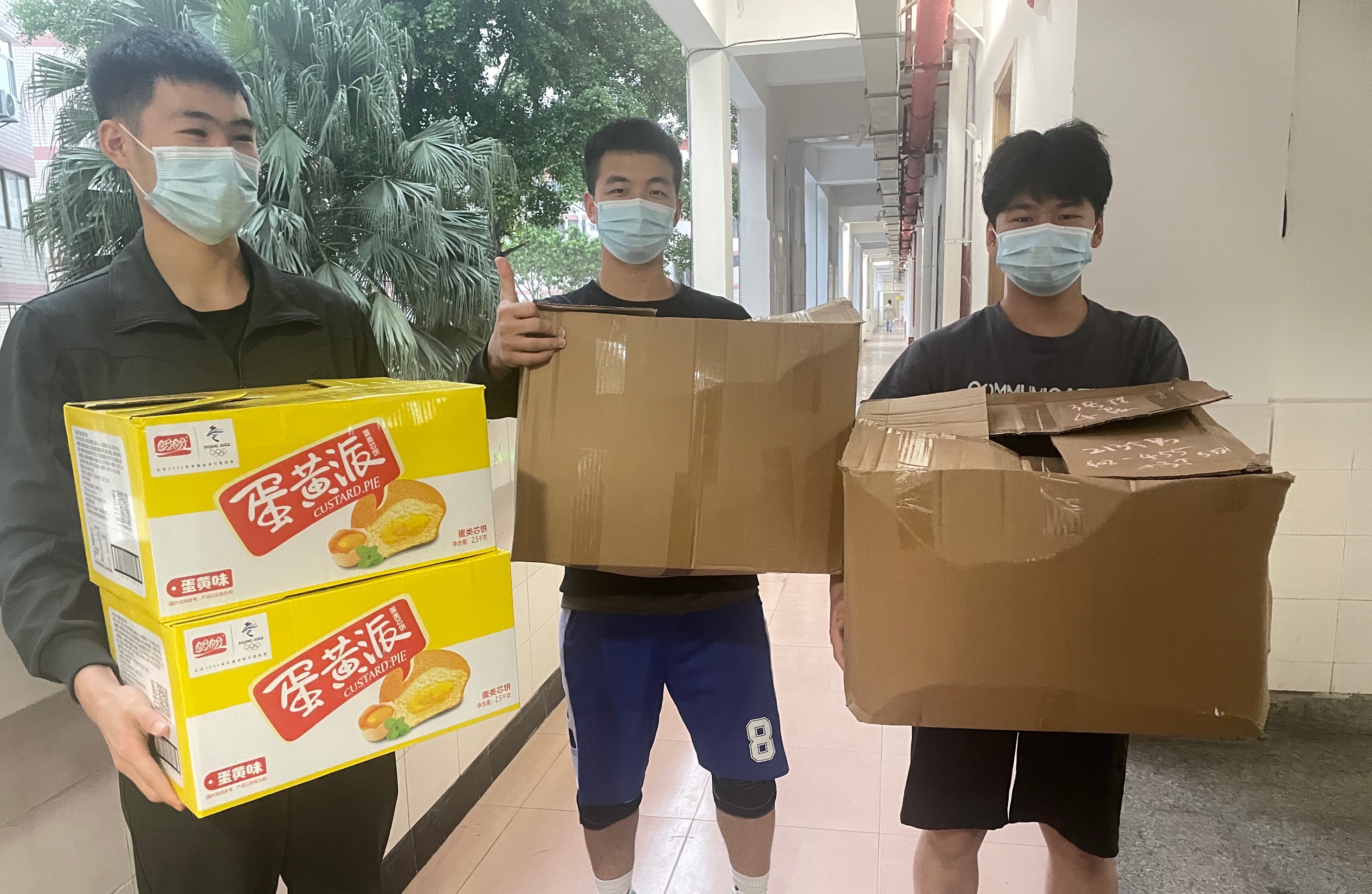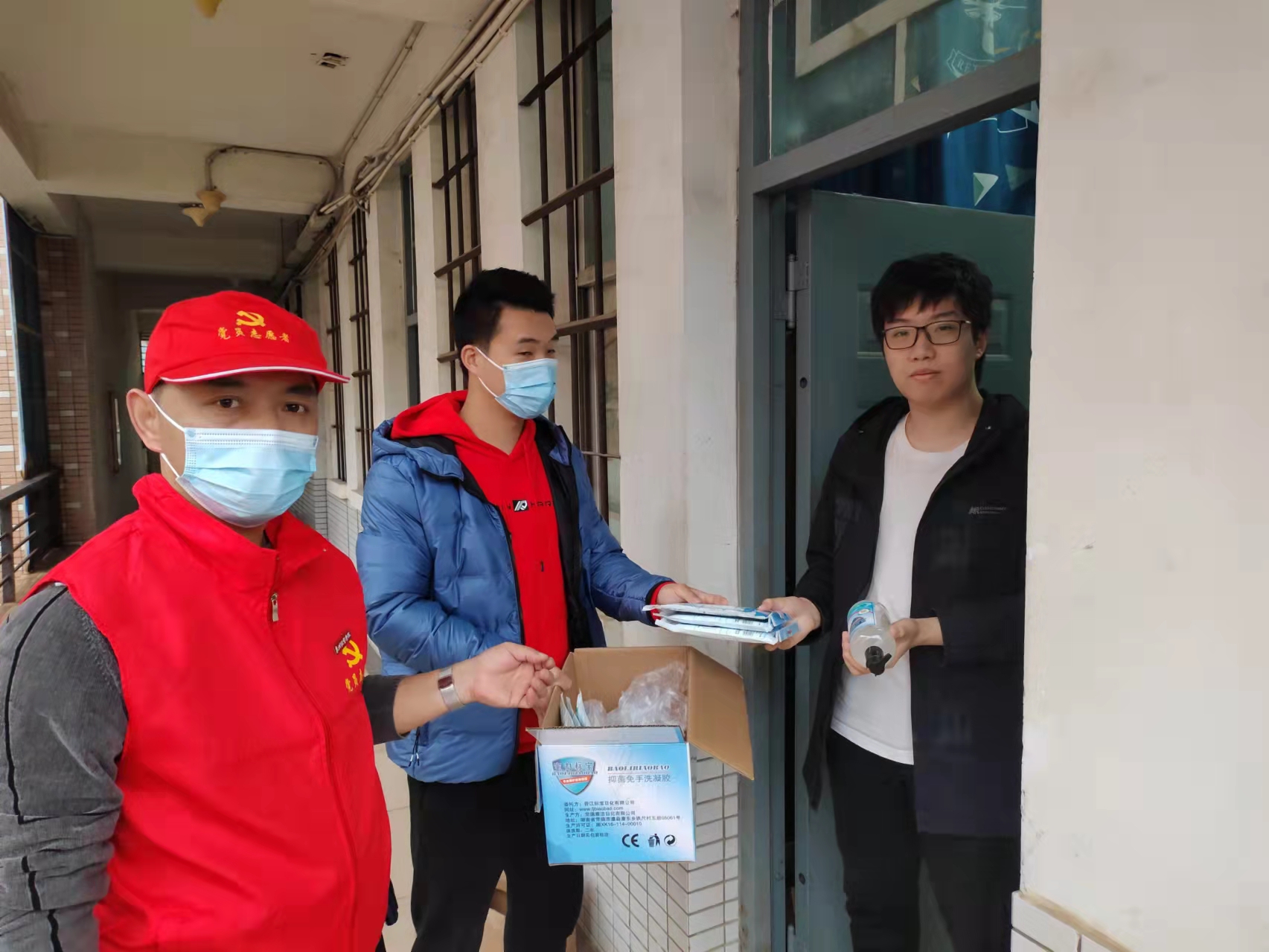 口罩、酒精、消毒液等防疫类物品,成为第一批配送到师生手中的物资。学院以班级为单位供应学生急需的生活用品,进行统一分发配送。