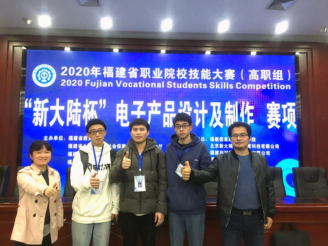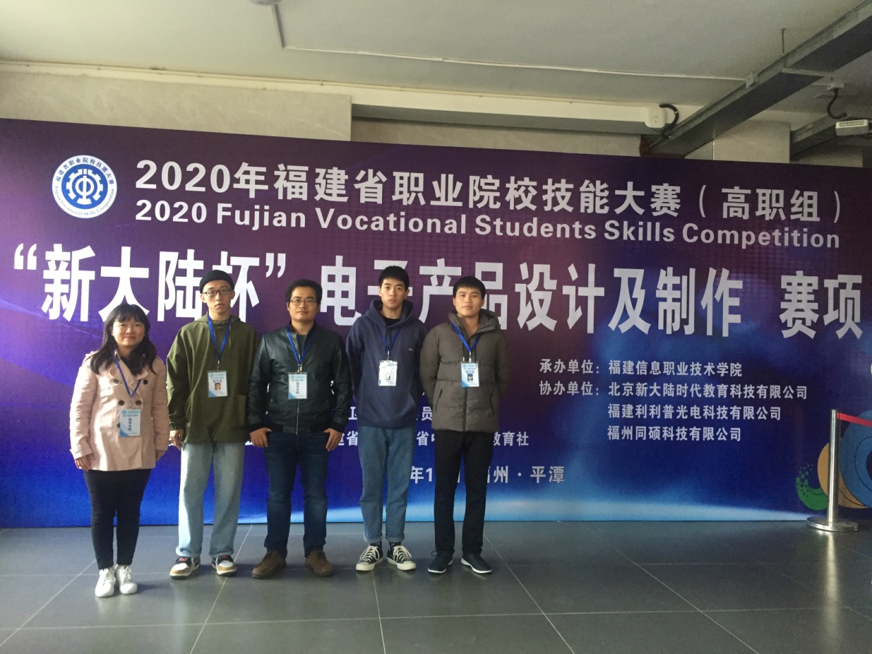 2019年12月29日,来自全省21所高职院校的22支代表队齐聚福建信息职业技术学院(平潭校区)参加2020年福建省职业院校技能大赛(高职组)“新大陆杯”电子产品设计及制作赛项的比赛。经过8小时的激烈角逐,我院代表队获得全省二等奖(第5名)的优异成绩。本次代表队由吕晓磊、孙美卫两位老师指导,应电172林荣裕、应电171余昊、应电181周杰3位同学组成。