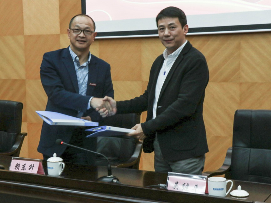 学院副院长赖东升在致辞中,回顾了学院在福建省教育厅第二批VR/AR职业教育实训基地建设项目申报和项目建设进展、参与网龙公司师资培训、省赛取得的优良成绩和虚拟现实应用技术专业的开设和招生情况等。网龙普天教育科技有限公司是网龙网络公司旗下VR/AR教育子品牌,赖副院长介绍了该公司在VR/AR职业教育中取得的成绩和行业地位,他表示本次与网龙普天教育科技有限公司进行实质性校企合作,一定能培养出福建省VR/AR技术的高端人才,也一定能够培养出符合市场需求的数字经济人才,并祝愿与网龙普天教育合作取得成功。