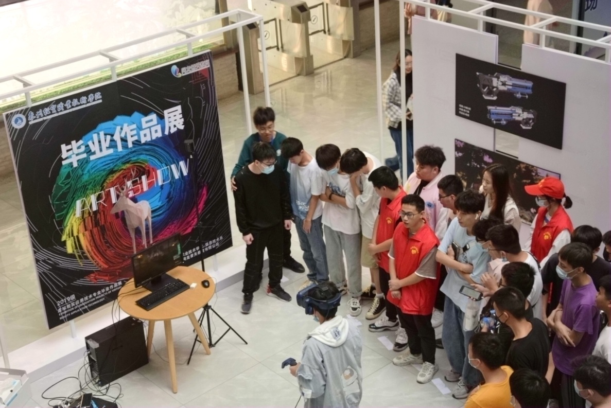 讲座结束后,同学们参加了在学院图书馆开展的VR设备体验活动,并参观了虚拟现实技术应用专业毕业作品展。