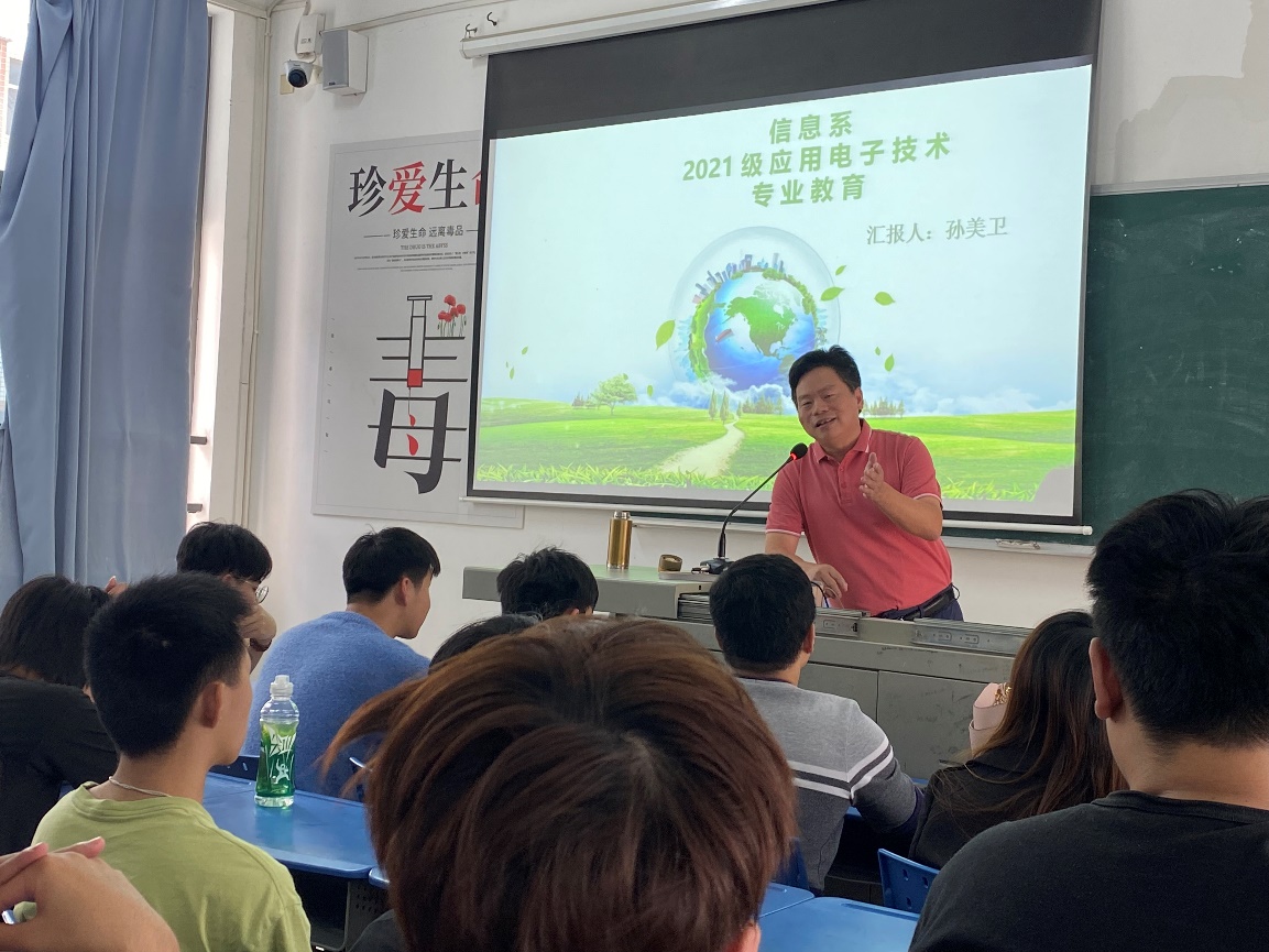 11月2日,信息系应用电子技术和数字媒体技术专业分别开展2021级新生专业教育活动,信息技术系主任李展宗及相关专业教师参加活动。