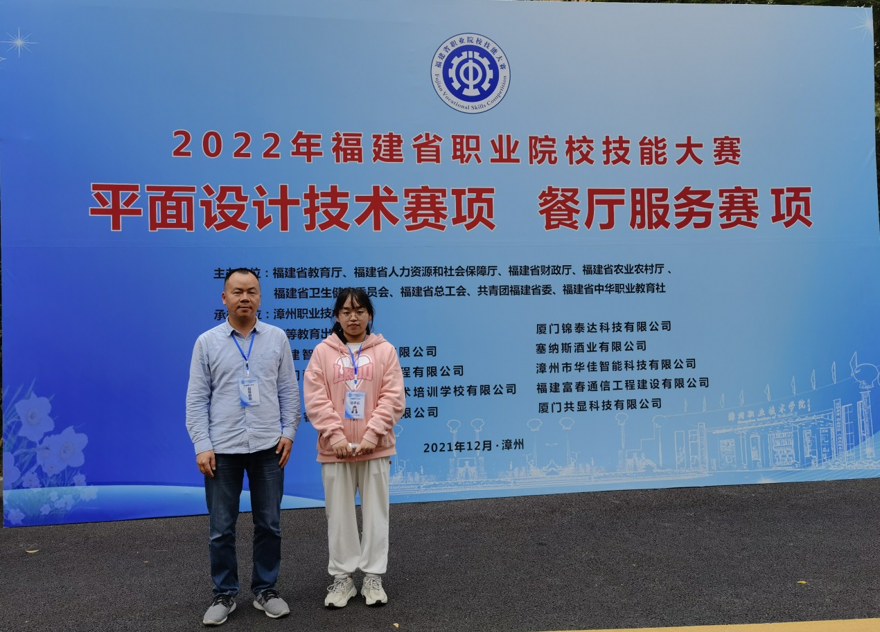 12月17日-19日,2022年福建省职业院校技能大赛“平面设计技术”赛项在福建漳州举办。本次比赛共有省内41所高职院校派队参赛,经过激烈角逐,我院颜杰群老师带领信息技术系计应194林慧静同学组成的代表队脱颖而出,喜获“平面设计技术”赛项高职组二等奖。这是我院在该赛项中取得的最好成绩,也是今年泉州高职院校取得的最好名次。