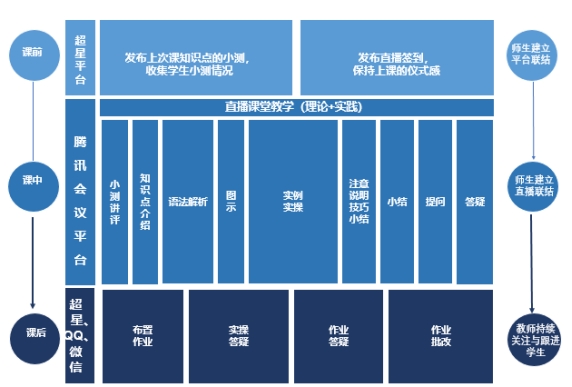 在课中进行签到,避开网络拥挤,也能更好监督学生的实际在线情况。随堂定时10至20分钟进行课程知识点的小测试,提高学生的参与度。