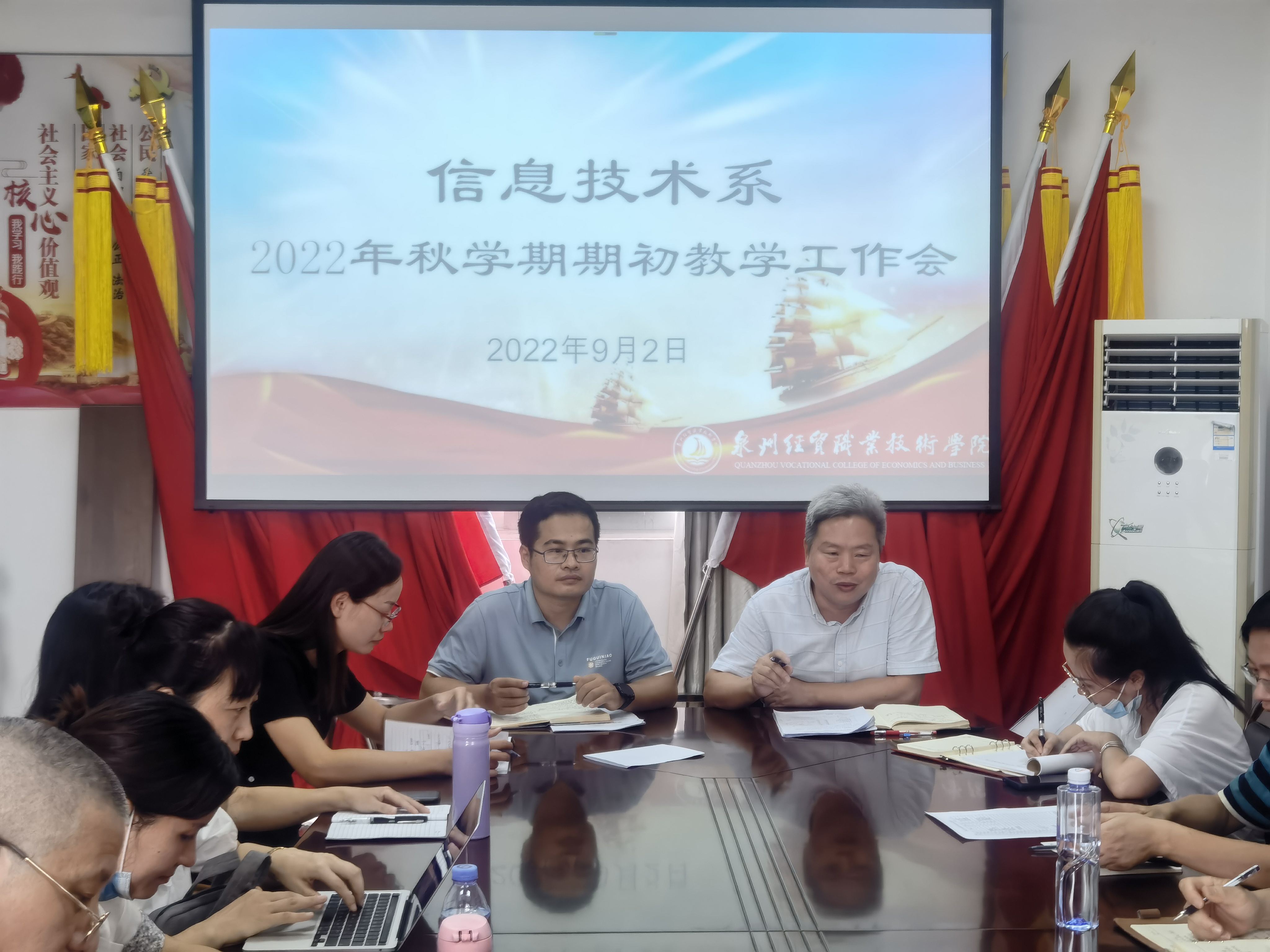 为确保新学期各项工作有序进行,9月2日下午信息技术系召开2022年秋学期期初教学工作会,信息技术系全体教职工参加。