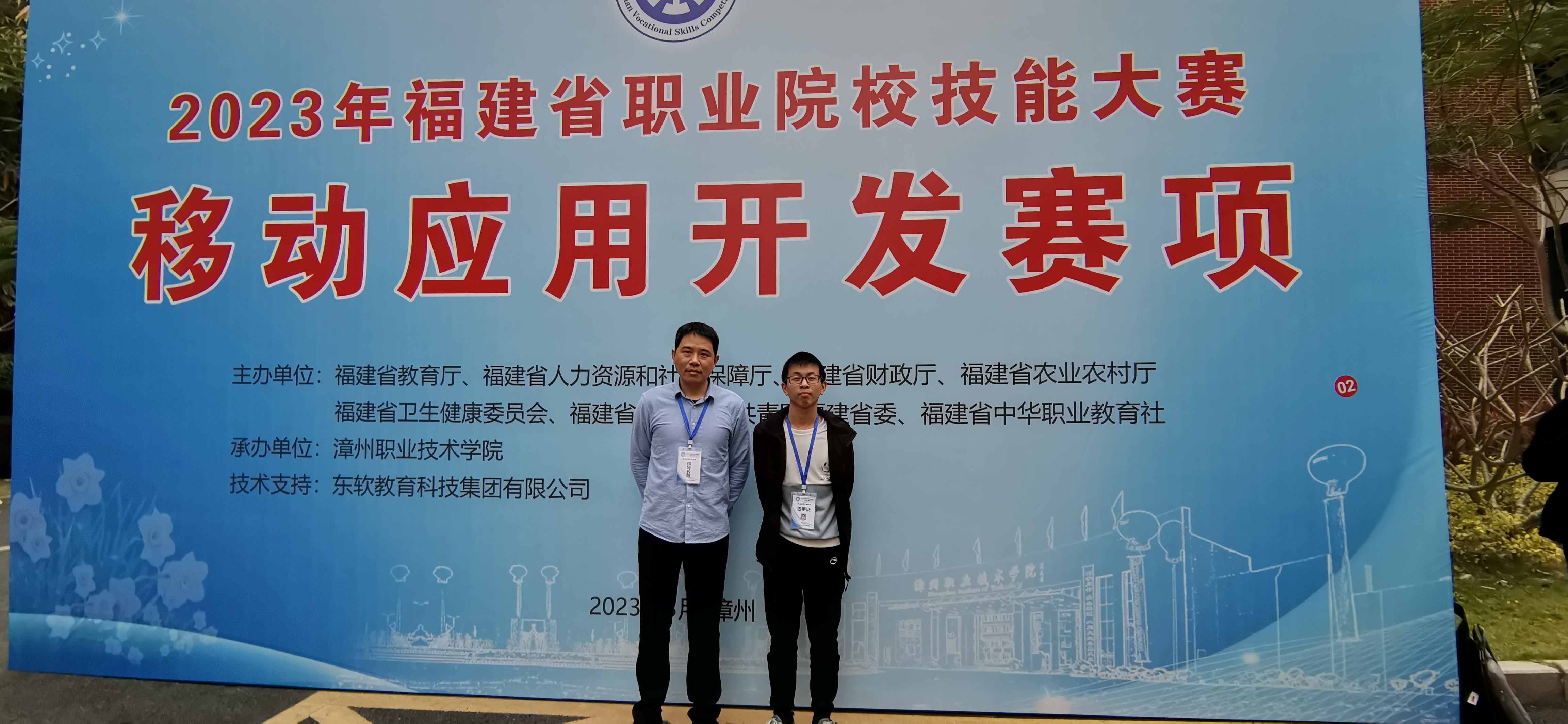 2023年福建省职业院校技能大赛移动应用开发赛项于3月12日在漳州职业技术学院举行,来自全省各个高职院校的53支参赛队伍同场竞技,共同角逐移动应用开发省赛奖项。我院移动互联应用技术专业许少强同学(指导教师陈锦)和邱承阳同学(指导教师江军强)参加比赛,并获得移动应用开发省赛二等奖的优异成绩,创造我院在该赛项的最好成绩,展示了我院移动互联应用技术专业的教学成果和专业技能,体现了省级移动互联应用技术专业教学资源库项目的建设成效。