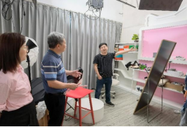 随后一行人来到福建省泉州旺吉贸易有限公司、泉州海广文化传播有限公司就视频行业发展、校企合作、企业招聘等问题进行交流;并在泉州海广文化传播有限公司总经理林新茂的陪同下参观了企业的直播室,了解其建设及日常运营细节。
