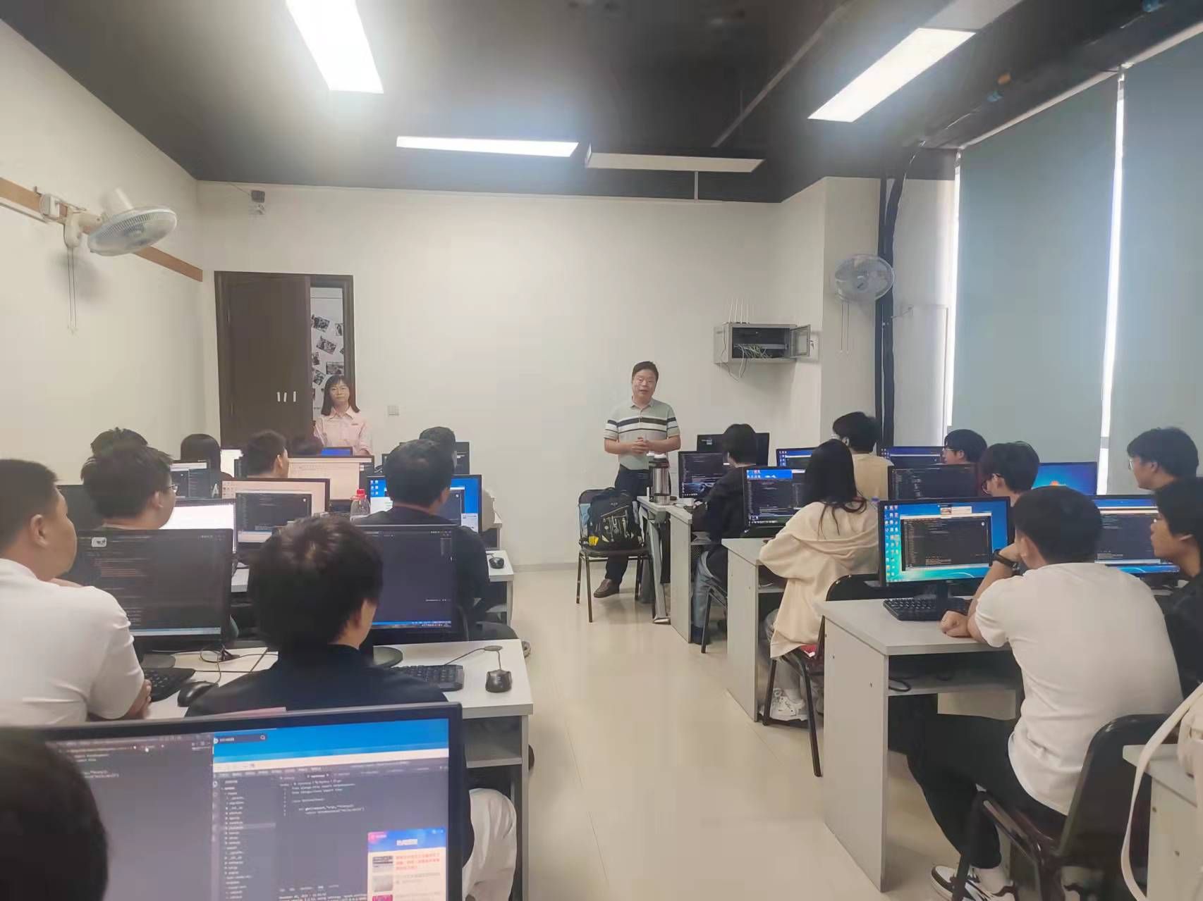 一行人还来到实训基地教室看望参训学生。沈副院长表示,在实训期间,学生应严格遵守有关规定,确保自身安全,珍惜实训机会,充分利用基地企业资源,了解行业动态和前沿技术,拓宽知识面,勤学苦练,做到学有所悟、学有所获、学有所成。同时,希望学生要关注自身的职业规划,明确自己的发展方向,不断提高自己的综合素质、实践能力和就业竞争力。