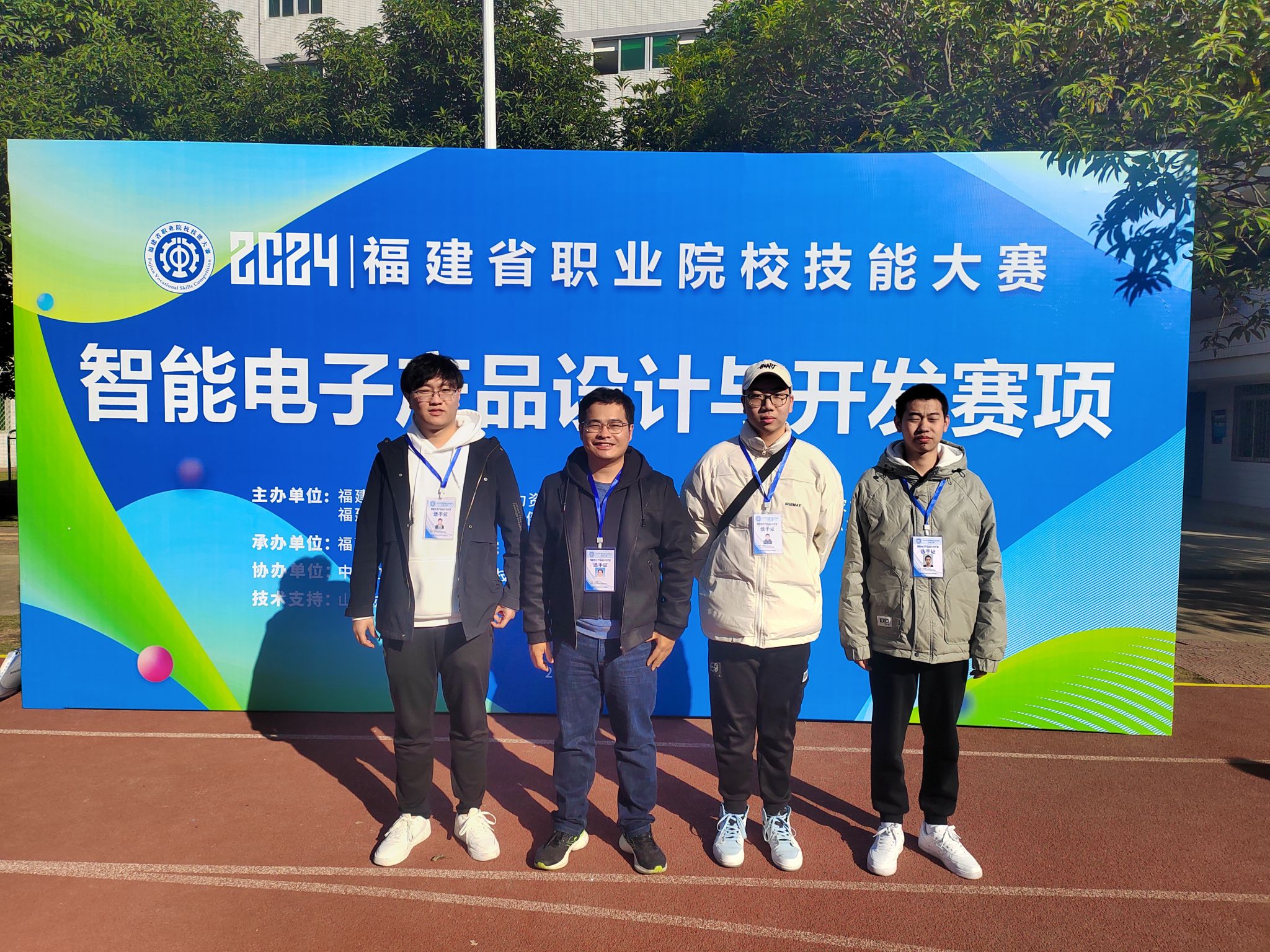 2024年度福建省职业院校技能大赛智能电子产品设计与开发赛项(师生同赛)于12月22至24日在福建信息职业技术学院举行,来自全省高职院校的26支队伍参加比赛。经过激烈角逐,由我院信息技术系吕晓磊、方仲豪、吴鸿博、郑奂先组成的代表队取得全省第5名,省赛二等奖的优异成绩。