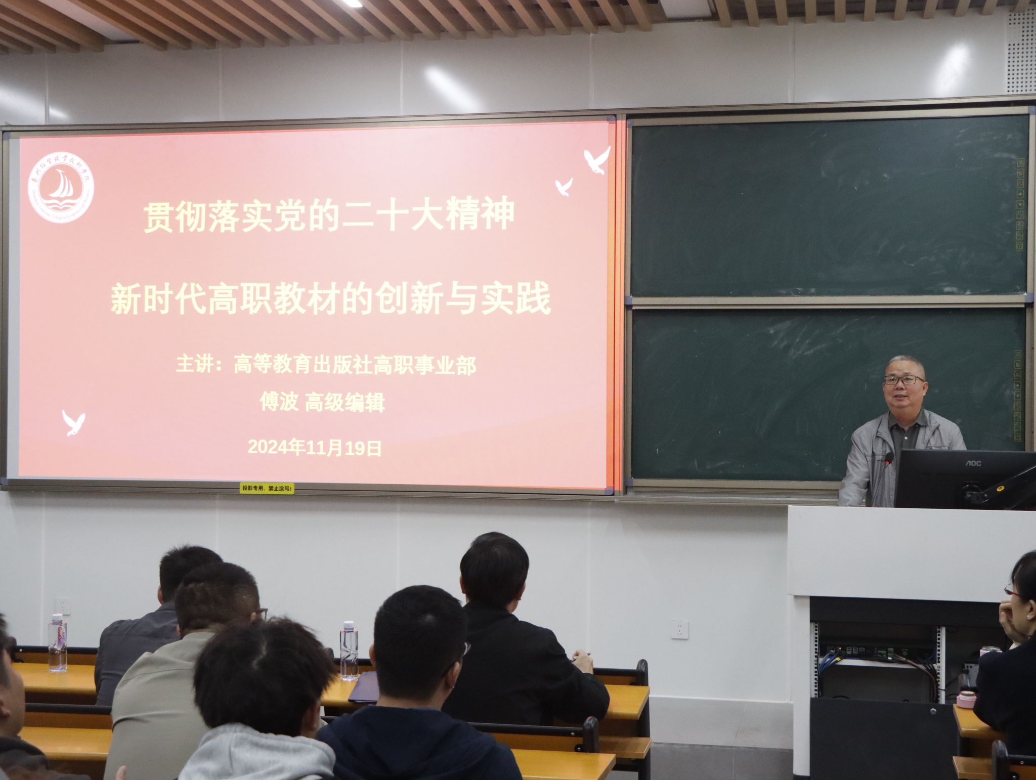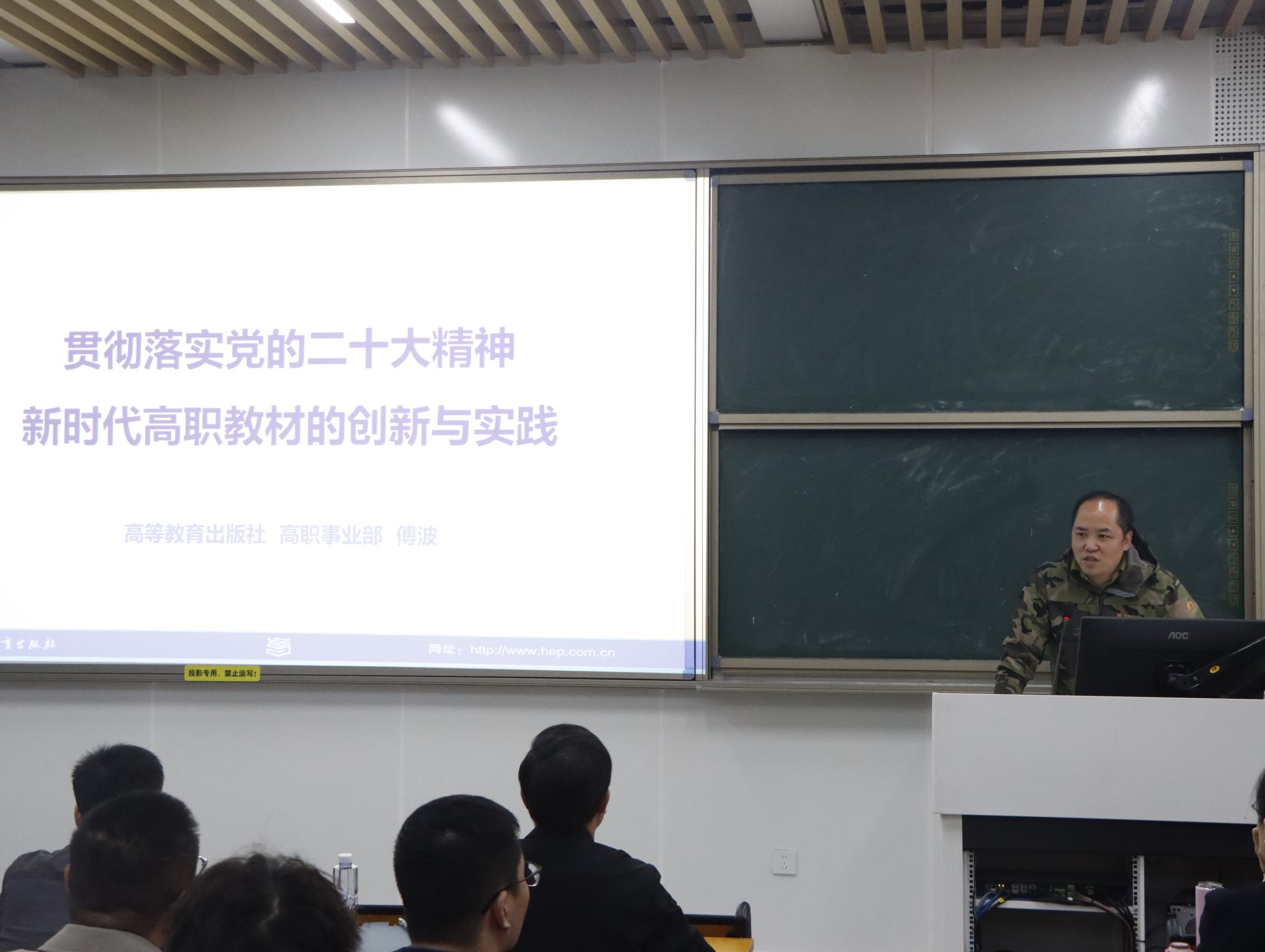 在学院迎来六十周年诞辰之际,为了推进专业建设,提升学院教材建设水平,促进教育教学质量的全面提高,11月19日下午,信息技术系特别邀请高等教育出版社职教事业部傅波高级编辑,为全系师生开设一场主题为《贯彻落实党的二十大精神,新时代高职教材的创新与实践》的精彩讲座。