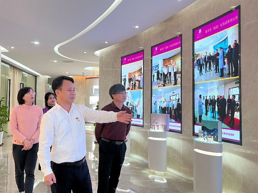 在嘉文丽(福建)化妆品有限公司,罗丽芬集团行政副总经理兼公司党支部书记王振华详细介绍了企业发展历程与技术创新成果,并通过观看企业宣传片和考察研发中心及生产线,大家深刻感受到嘉文丽公司从传统制造向“智能工厂”转型的跨越式发展。双方就人工智能技术应用场景的开发、岗位技能人才需求展开深入交流,同时,就实习实训、党建结对共建等校企合作事项初步达成合作意向。