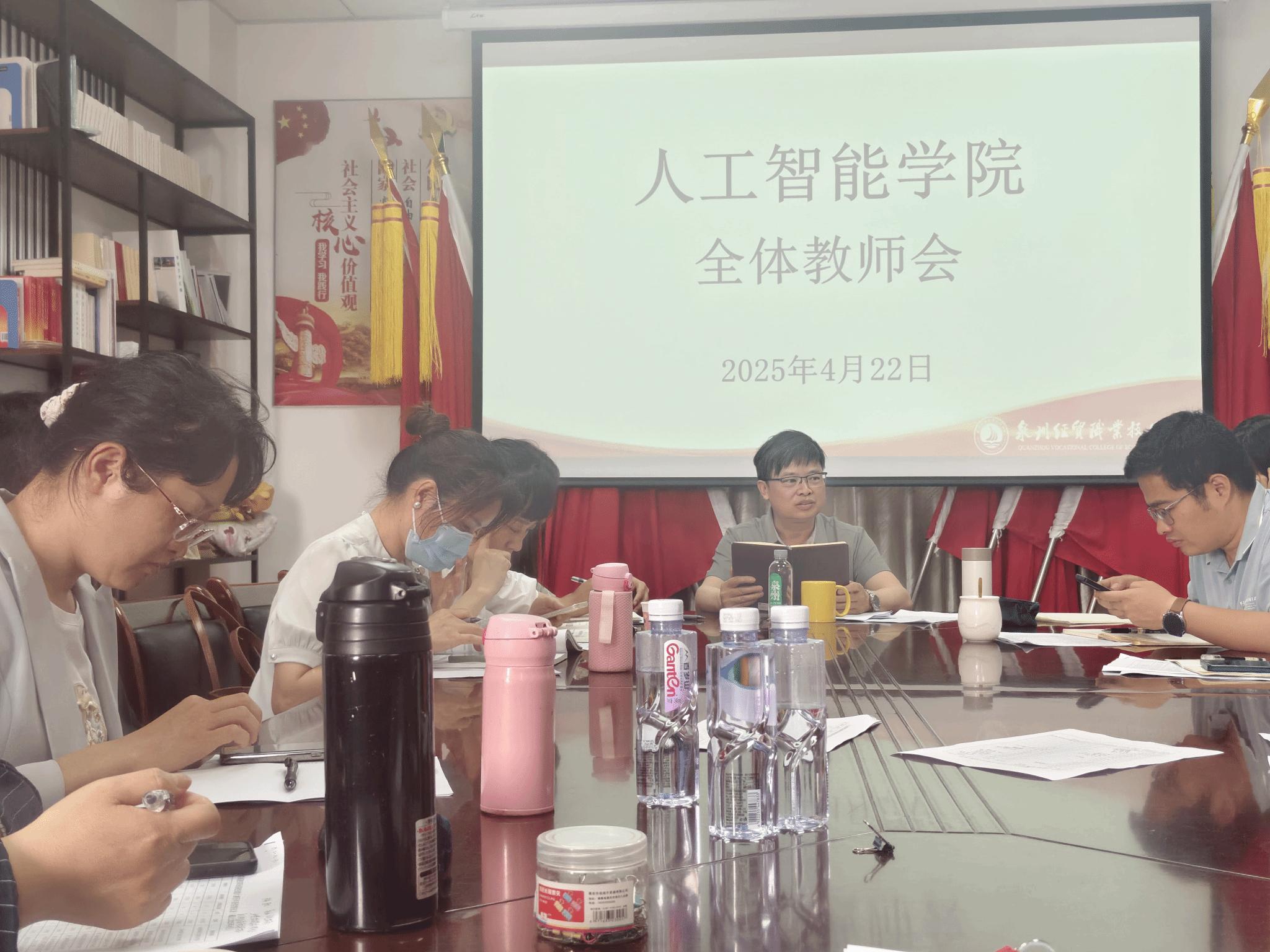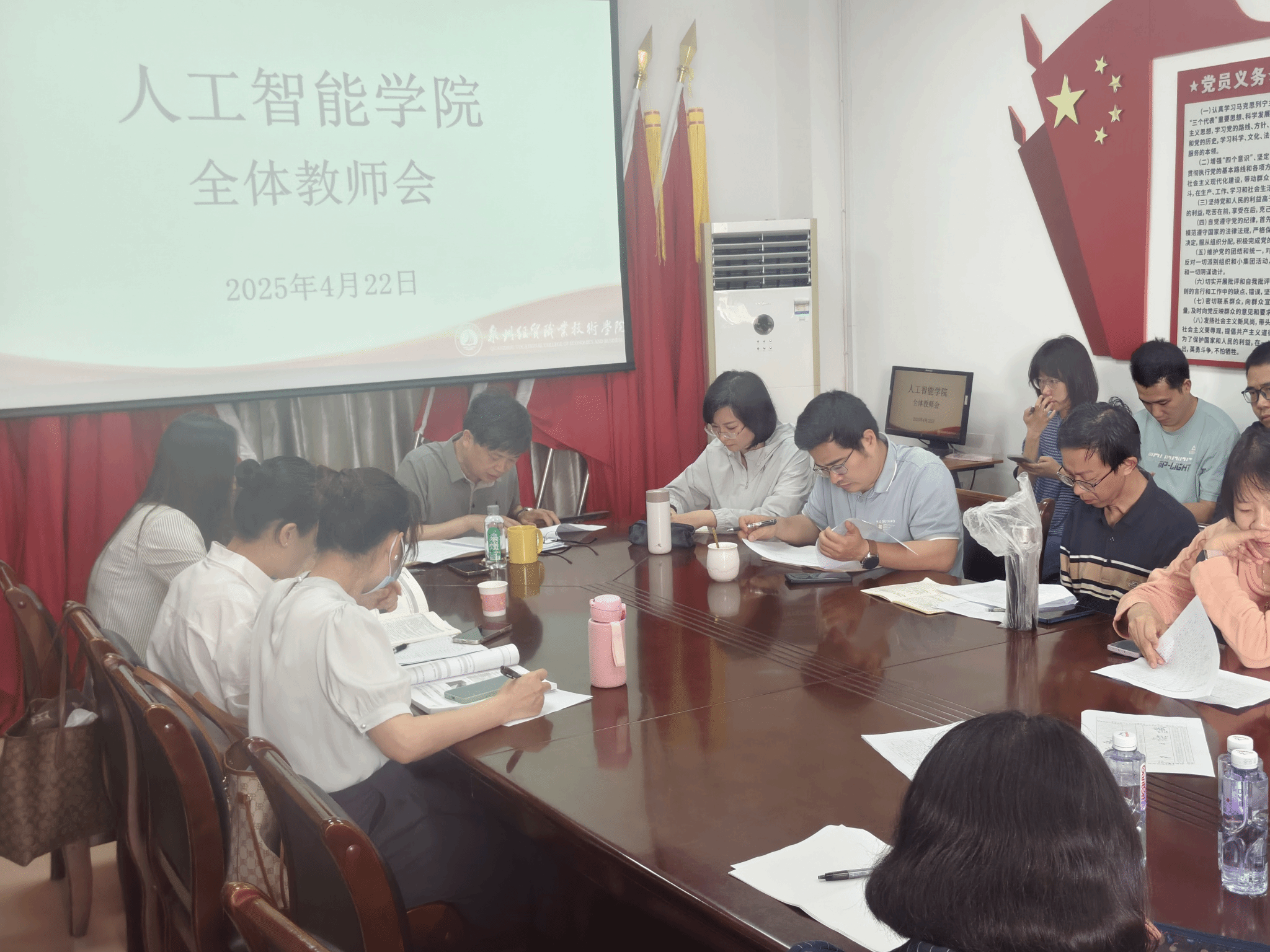 4月22日下午,人工智能学院于东教510会议室召开全体教师会。本次会议旨在总结前期工作,明确未来发展方向与目标,进一步凝聚全体教师力量,推动学院在教学、竞赛和就业工作等各方面迈向新台阶。全体教师齐聚一堂,共同为学院发展出谋划策。