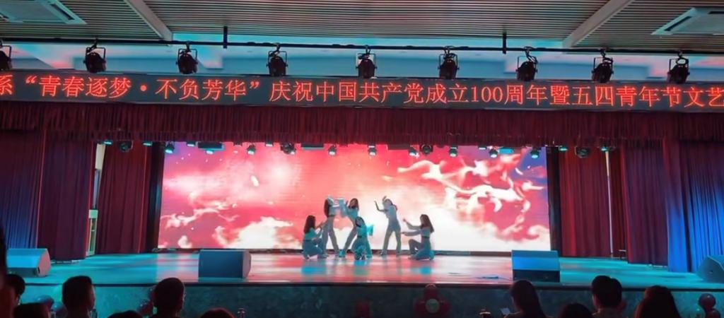 5月28日晚,信息系“青春逐梦·不负芳华”庆祝中国共产党成立100周年暨五四青年节文艺晚会在大礼堂举行。